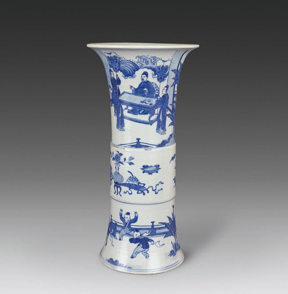 青花人物花觚