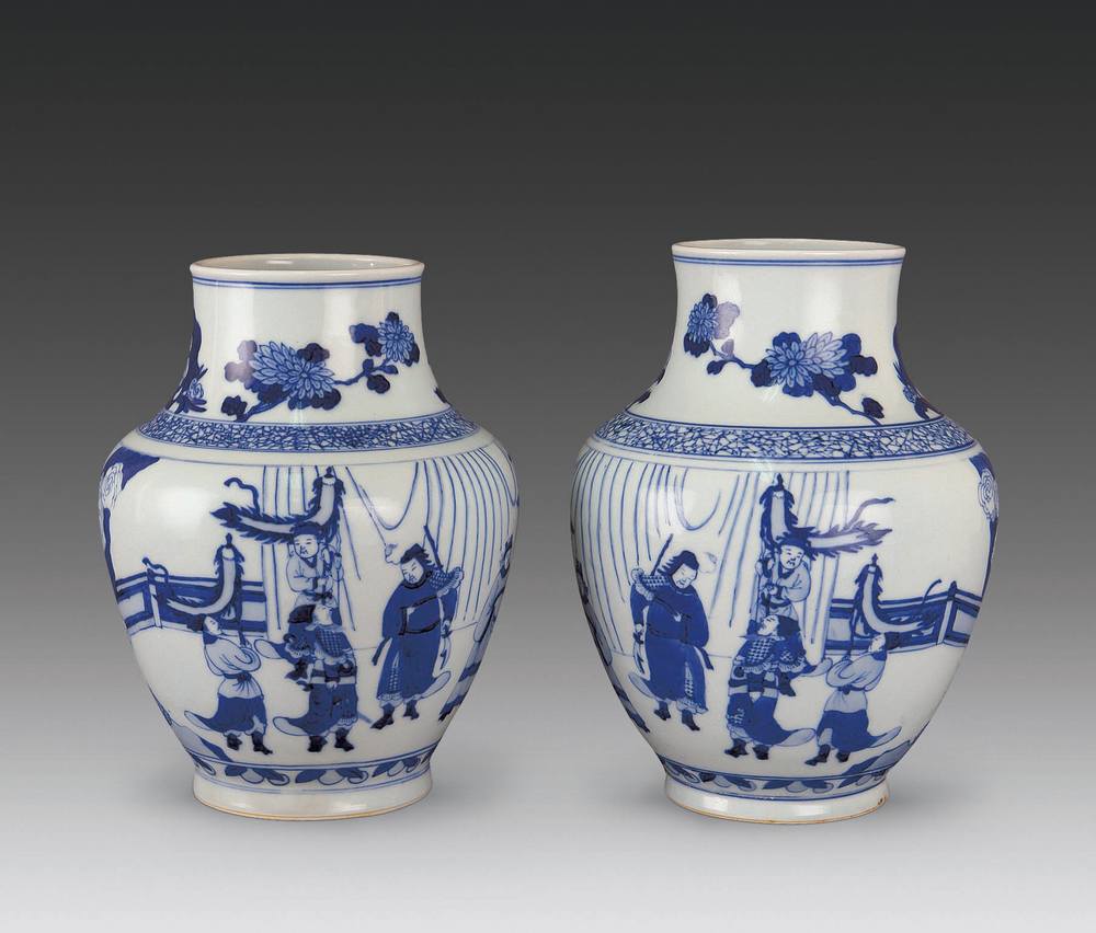 青花人物罐(一对)