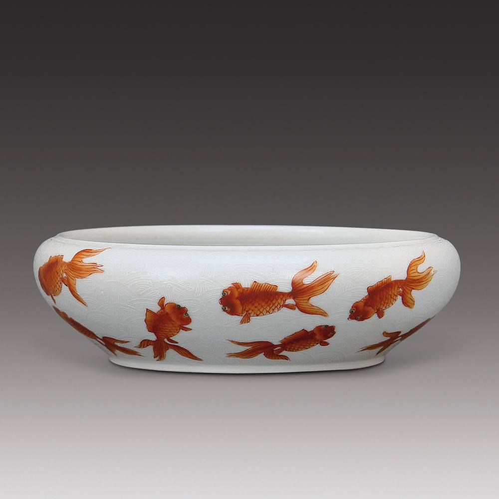 红彩金鱼纹笔洗
