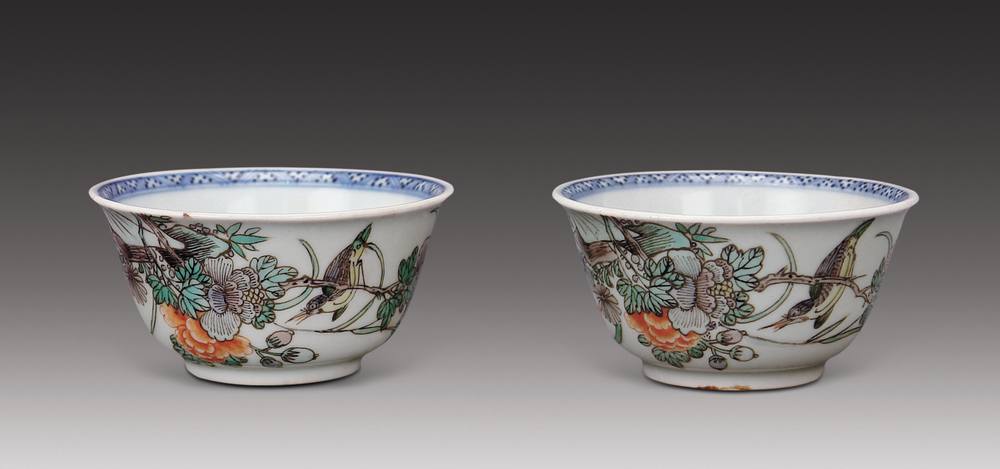 豆青釉加彩内青花小杯(一对)