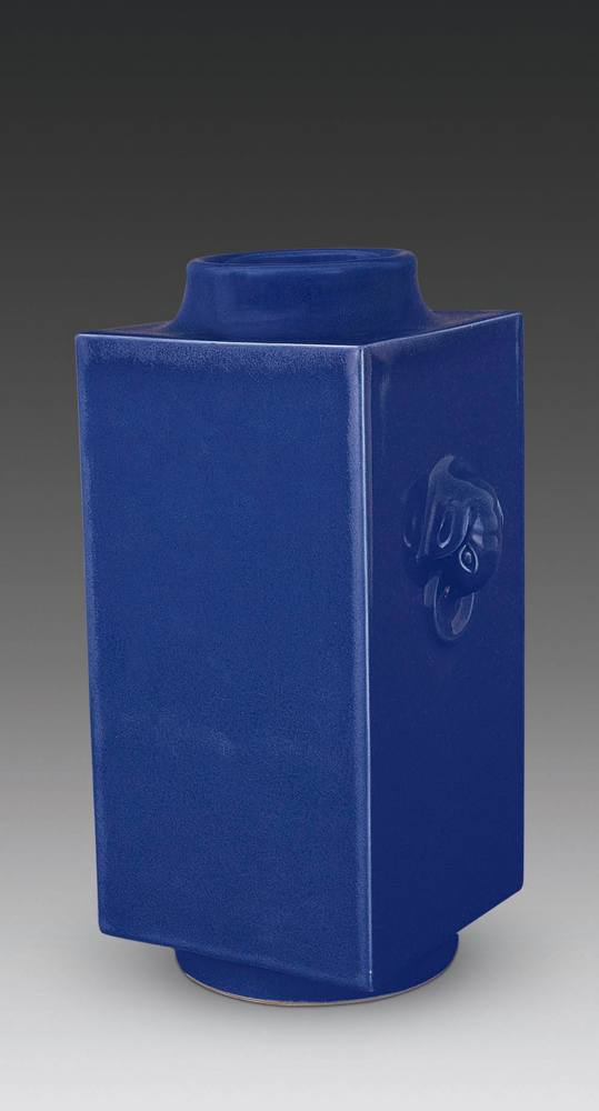 祭蓝釉四方象耳瓶