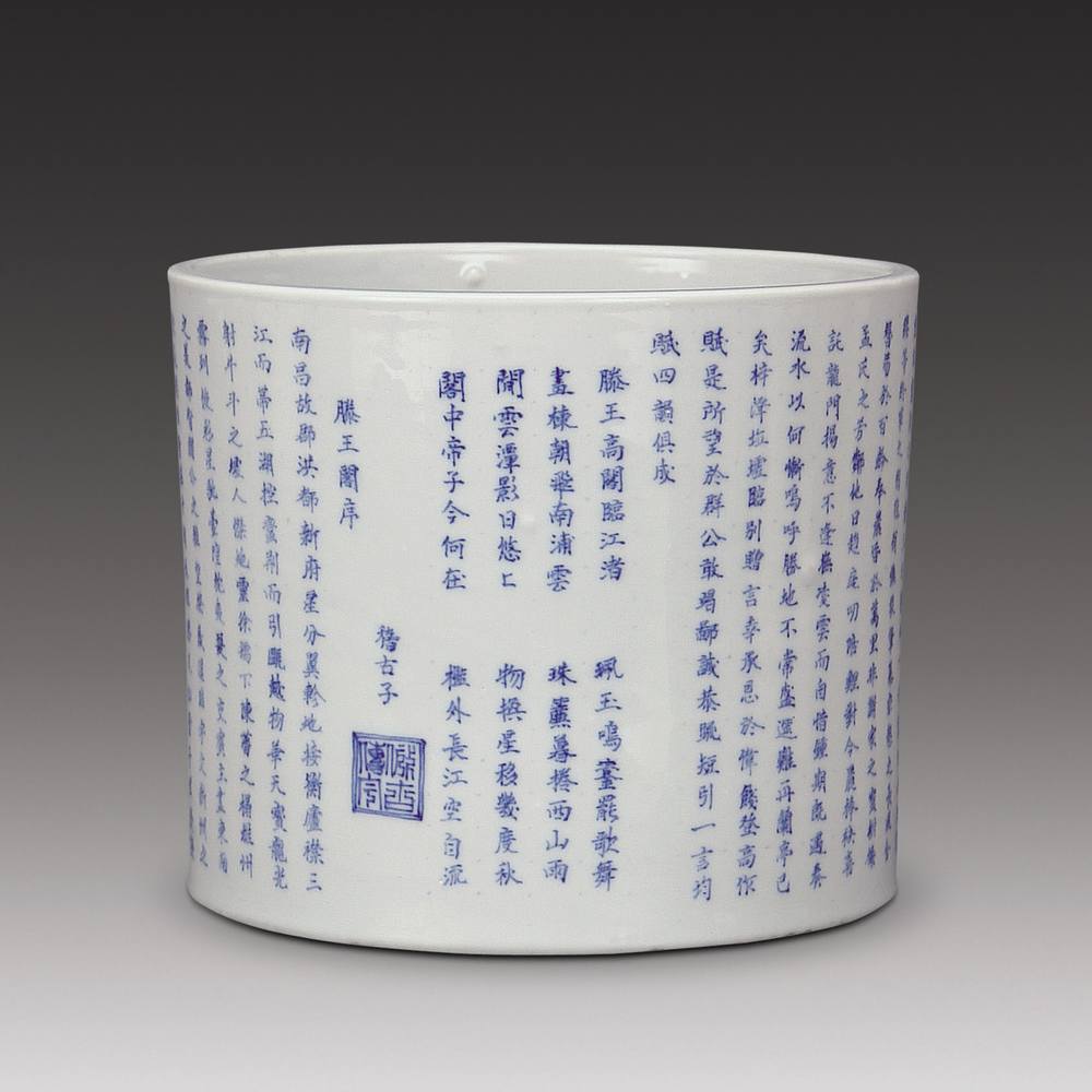 青花诗文笔筒