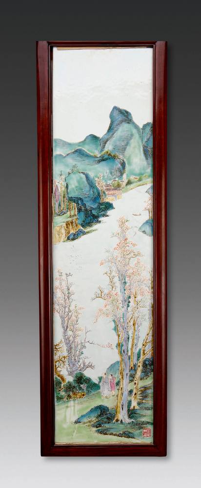 汪大苍粉彩人物山水瓷板