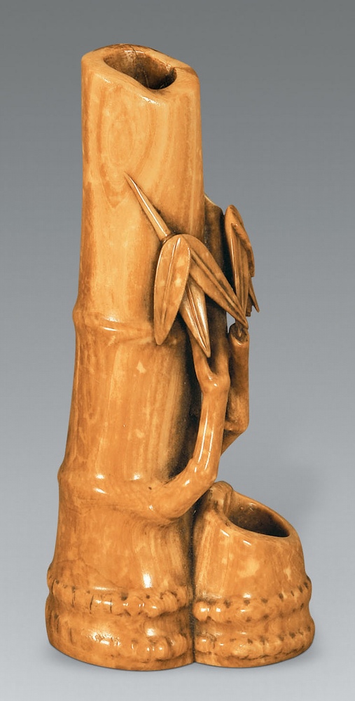 竹节外形,造型生动,做工精细,象牙用料考究,是当朝贵族文房中难得的一件精品。