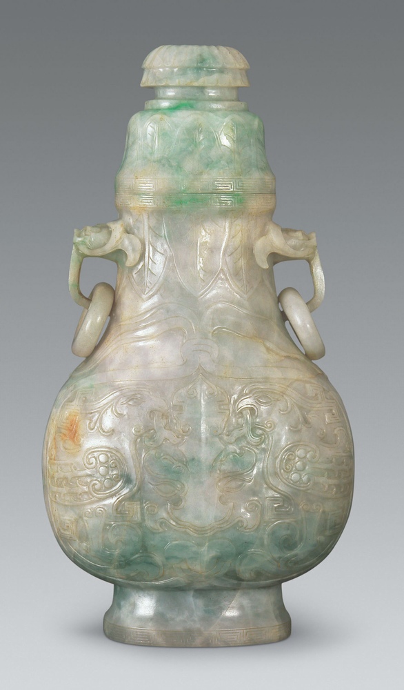 清乾隆 翡翠双环耳瓶