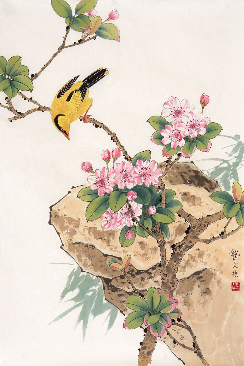 龚文桢 海棠黄鹂 镜心