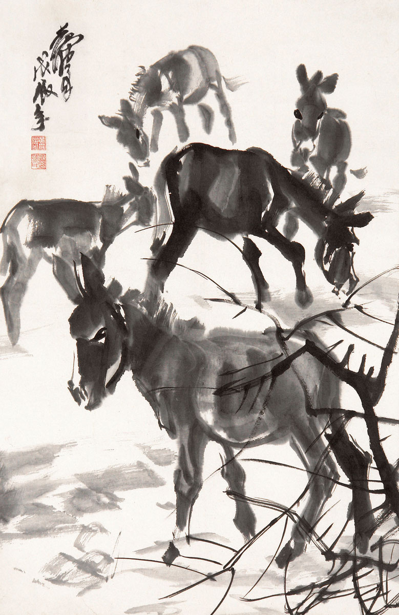 黄胄 五驴图 立轴